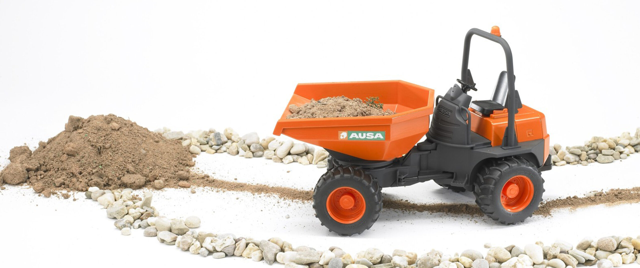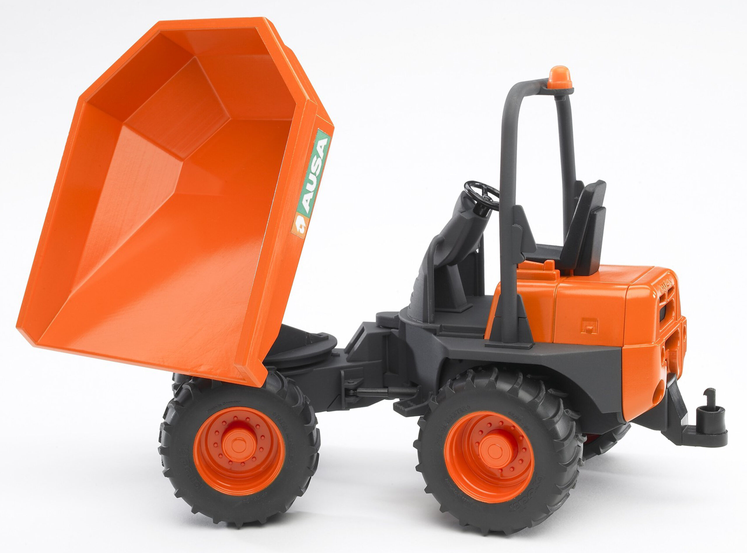 When the construction site is tight and space is limited, this agile vehicle is the perfect solution. The AUSA Minidumper toy is designed to carry heavy loads of soil, sand, or rubble through narrow gaps where bigger trucks simply cannot go. Its articulated steering ensures it can turn sharply and navigate obstacles with ease, making it an incredibly fun and interactive machine for young builders to drive. Manufactured from high-quality, durable plastics, this robust dumper is ready for hard work in the garden sandpit or on the playroom floor. It features a rear coupling, which adds extra play value by allowing it to tow light Bruder trailers. The rugged tread tyres provide excellent grip on uneven ground, ensuring the vehicle stays stable even with a full load.