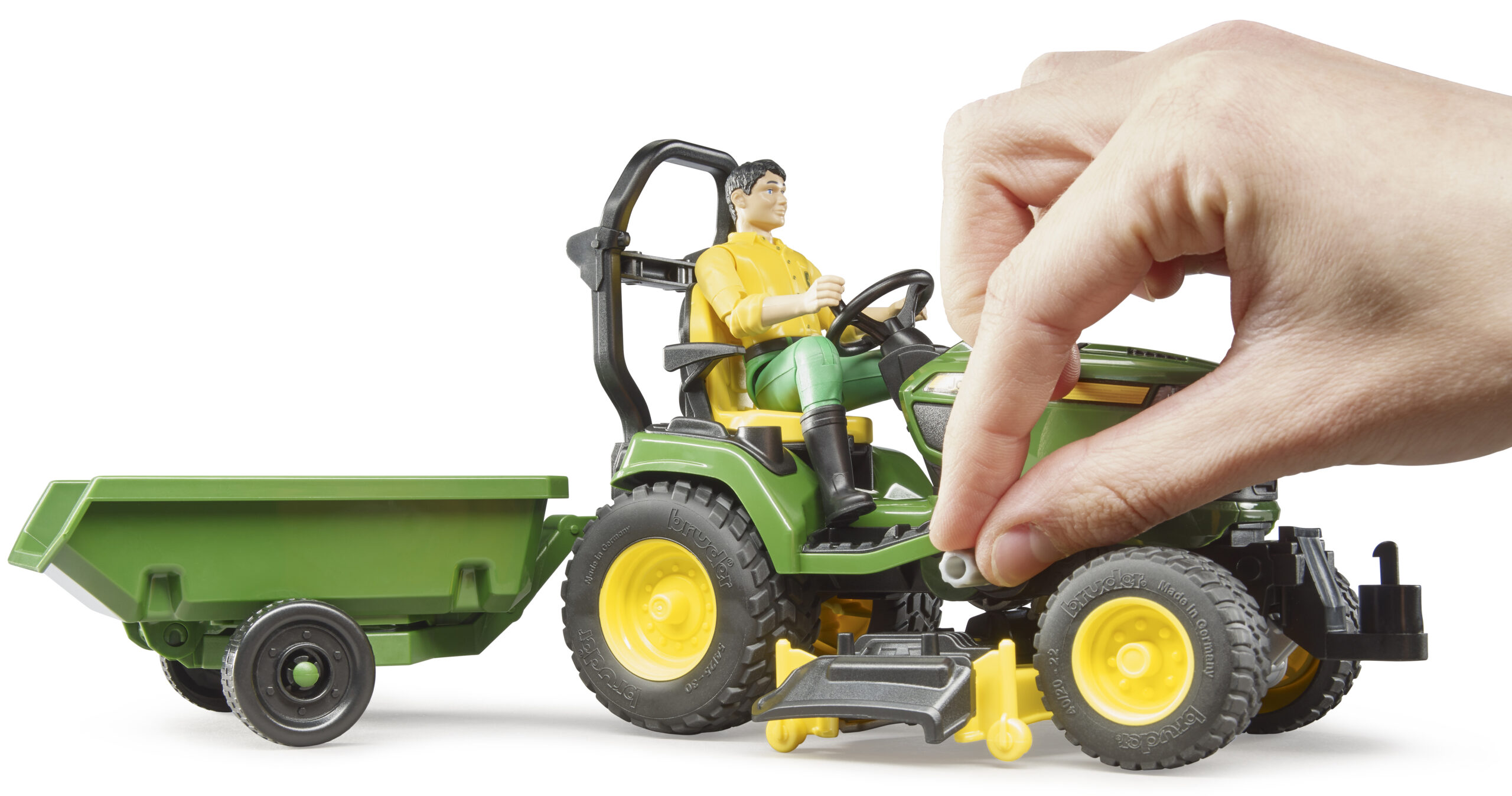Built from high-quality ABS plastic, this durable set is ready for any job, indoors or out. The bworld gardener figure is fully articulated, able to sit, stand, and hold the steering wheel, encouraging immersive and creative storytelling. The attention to detail, from the iconic green and yellow colour scheme to the rugged tread tyres, is exceptional.