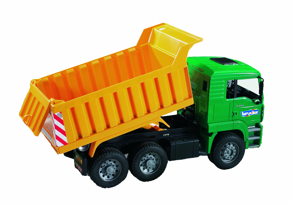 The main attraction is the fully functional tipping trough. Children can load the yellow bed with sand, gravel, or rocks, and then tip it up to dump the cargo exactly where it’s needed. As the bed rises, the rear tailgate swings open automatically to release the material. Built from high-quality, durable plastics, this man tga tip up truck is designed to withstand the rigours of active play, making it a perfect addition to any toy construction fleet.